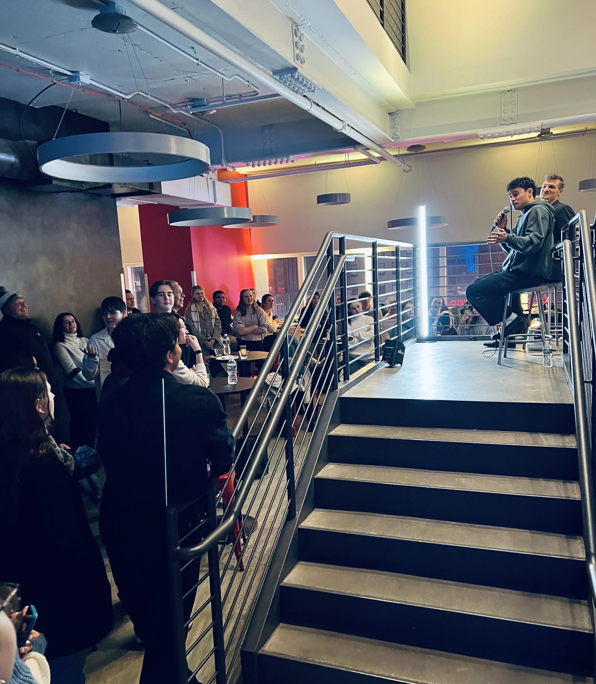 After you see a BROADWAY SHOW, enjoy a private lounge overlooking Times Square with a visit from a cast member from the show you just saw, enjoy catering followed by an open mic with a live pianist.