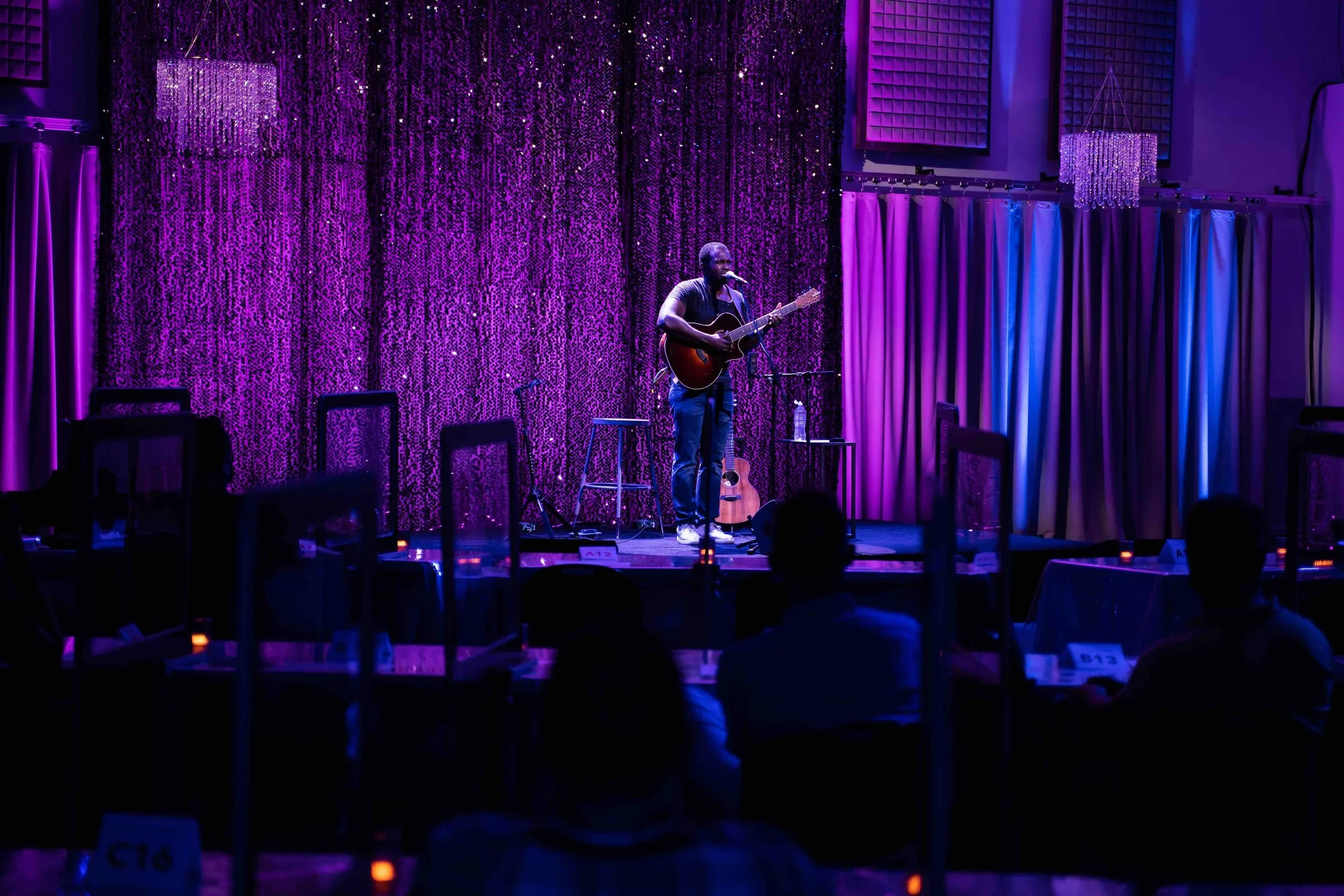 40' w x 21' h gray curtain with Chauvet lighting