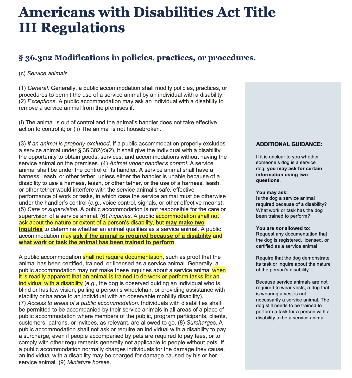 SERVICE ANIMALS/ANIMAL ACTORS
